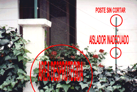 OBSERVE QUE EL ANCLAJE DEL POSTE ES IMPROVISADO (SUJETO CON ABRAZADERAS
